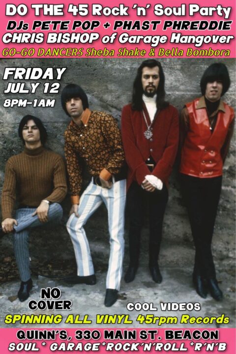 To celebrate 20 years of Garage Hangover I will be spinning some records at Do The 45 Rock ‘n’ Soul Party at Quinns in Beacon, NY on Friday, July 12, with old friends and fellow DJs Pete Pop (garage collector extraordinaire) and Phast Phreddie (who has known everyone cool in the music world since 1973).